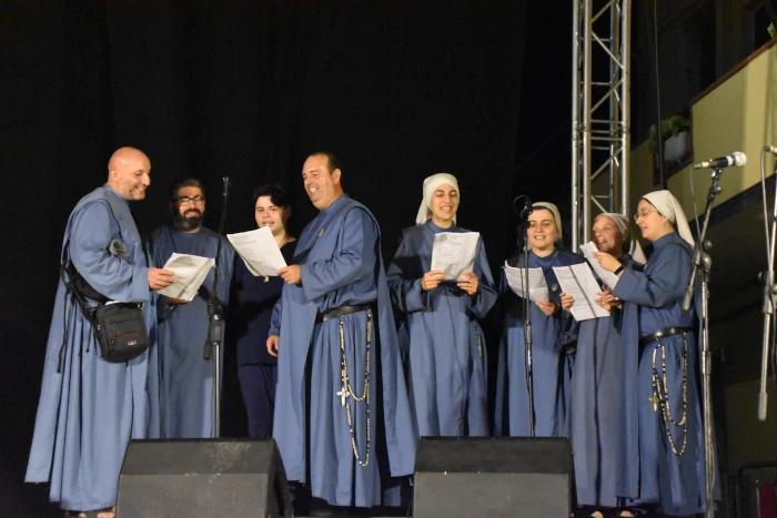 Una band composta da Fratelli, Sorelle e amici laici. “Magnificat anima mea Dominum. Cantiamo la gioia con Maria”: questo il titolo del concerto. Un percorso musicale che dall’energia drammatica del rock passa alle austere melodie medievali, a ballate dal sapore romantico, per concludere con i ritmi irresistibili della samba, che ha coinvolto tutta la piazza in un’esplosione di festa. Magnificat! Questo il grido conclusivo del concerto. Che lancia un messaggio chiaro: il Vangelo è gioia piena!