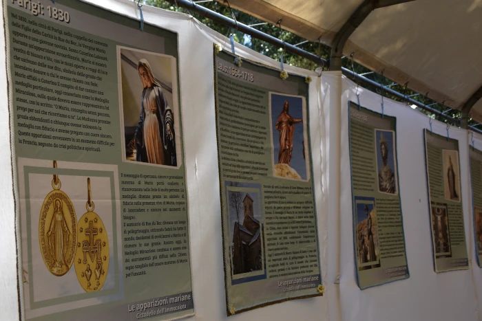 E poi un momento particolarmente emozionante. L’inaugurazione della Mostra Mariana, con una firma davvero speciale: Carlo Acutis! Che proprio in quelle ore, insieme a Piergiorgio Frassati, veniva proclamato santo in piazza s. Pietro. Un’imponente mostra pensata e realizzata proprio da Carlo. Rielaborata e sintetizzata, per offrire a tutti la possibilità di conoscere le principali apparizioni mariane riconosciute dalla Chiesa. Da Guadalupe (1531) a Kibeho, Ruanda (1981-1989).