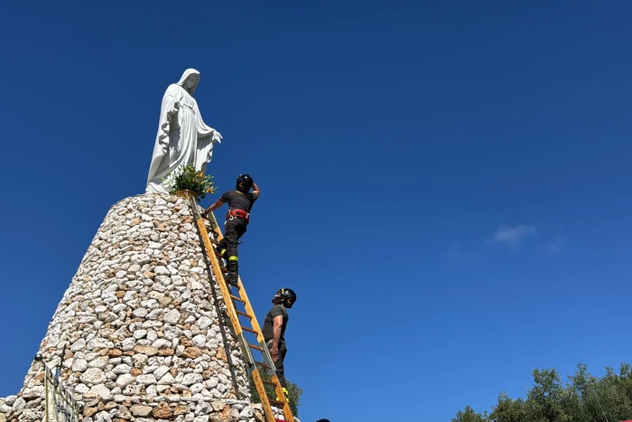 La Messa del mattino, con la partecipazione degli amici ciclisti, è stata celebrata in suffragio delle vittime della strada. Numerosissimi i fedeli presenti! E poi un altro momento commovente. Una piccola processione verso la Torre dell’Immacolata. Dove i Vigili del Fuoco hanno offerto un omaggio floreale alla Madonna. Un segno semplice e forte. Affidamento, tenerezza filiale verso Colei che è Rifugio e Protezione in tutti i pericoli. E ancora ai piedi di Lei, Regina della Pace, abbiamo liberato due colombe bianche. Augurio e preghiera ardente per la pace, nella tesissima situazione internazionale che stiamo vivendo.