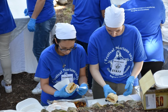 Allegria e fraternità nella condivisone del pranzo all’area pic-nic. In cui i laici amici della Cittadella si sono prodigati per servire i tanti pellegrini presenti. Tutti con la coloratissima maglietta realizzata per l’occasione! Con il motto del festival di quest’anno, dal sapore kolbiano: “Ti seguiremo ovunque ci condurrai, o Vergine Immacolata”.