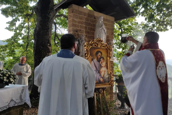 Gli alberi. Stavolta due tigli grandi e frondosi. Per formare il suggestivo scenario in cui abbiamo celebrato la Messa il 4 settembre, Primo Mercoledì del Mese in onore di san Giuseppe. Nella piccola cappella esterna, luogo ritirato della Cittadella, in cui si respira meglio il nascondimento vissuto dalla sacra Famiglia di Nazareth. E anche al nostro caro santo abbiamo voluto offrire dei fiori. Simbolo di quella bellezza che è dono del Creatore. E che a Lui vogliamo restituire, arricchita dalla nostra profonda gratitudine.